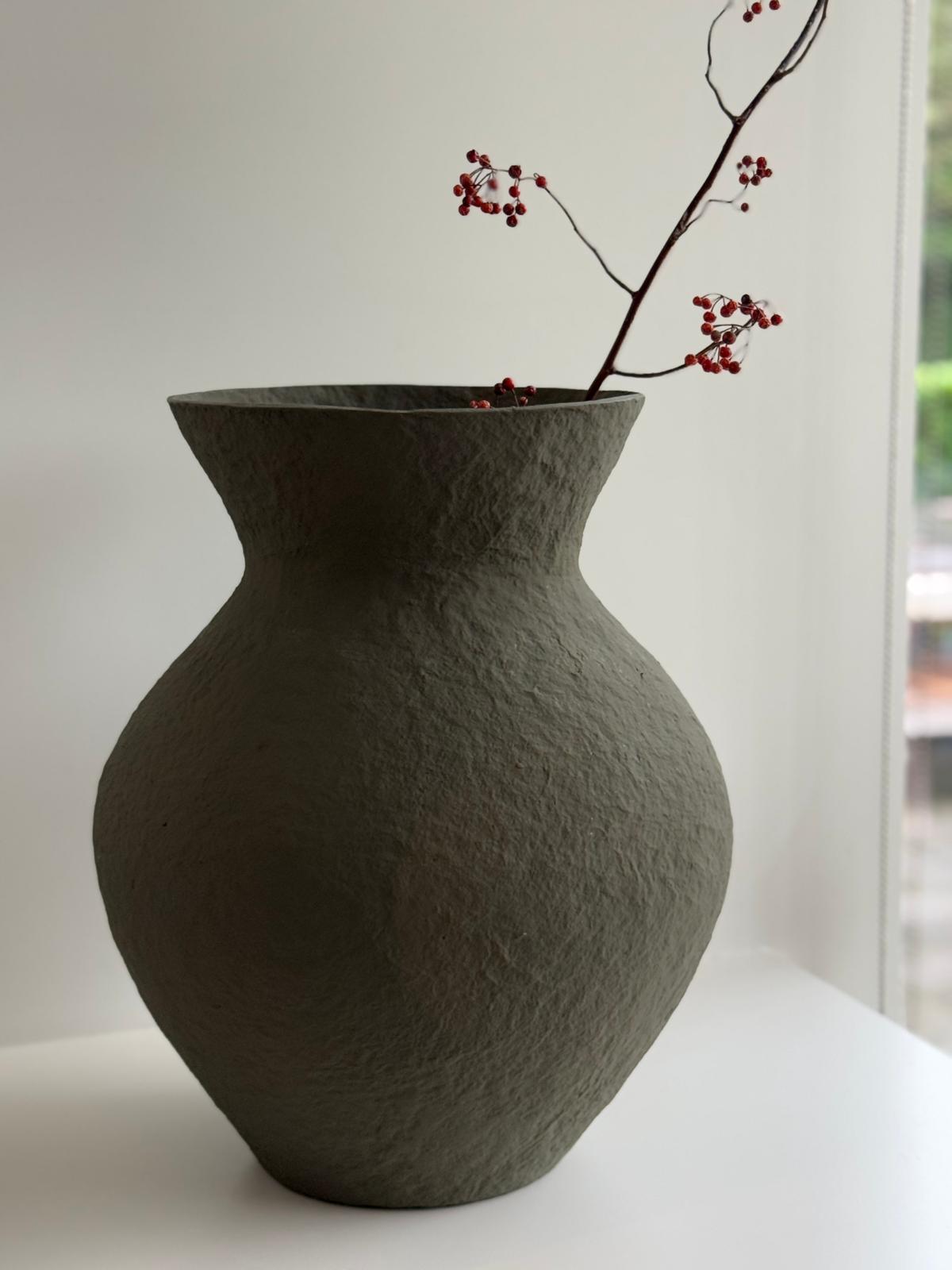 Papier mache decoratie vaas voor droogbloemen – Groen